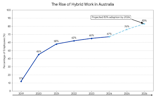 67% of Australian employees now work in hybrid arrangements, up from 12% in 2019