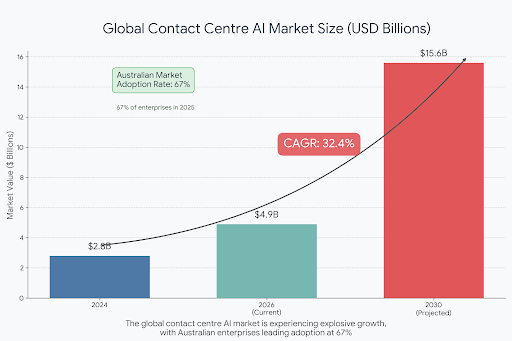 AI powered contact centre solutions have fundamentally redefined customer experience in 2026, enabling organisations to deliver faster, more personalised, and more efficient service than ever before. With the market growing from $2.8 billion to a projected $15.6 billion by 2030, and Australian enterprises achieving 284% ROI over three years, the business case for adoption is compelling. The integration of intelligent automation, natural language processing, and predictive analytics creates contact centres that anticipate customer needs, provide instant resolutions, and seamlessly orchestrate experiences across channels.